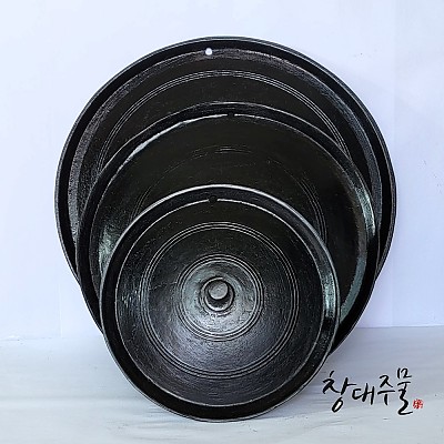 국산 무쇠 가마 솥뚜껑 불판 구이판 [40cm]- 손잡이 없음(가운데), 길들임